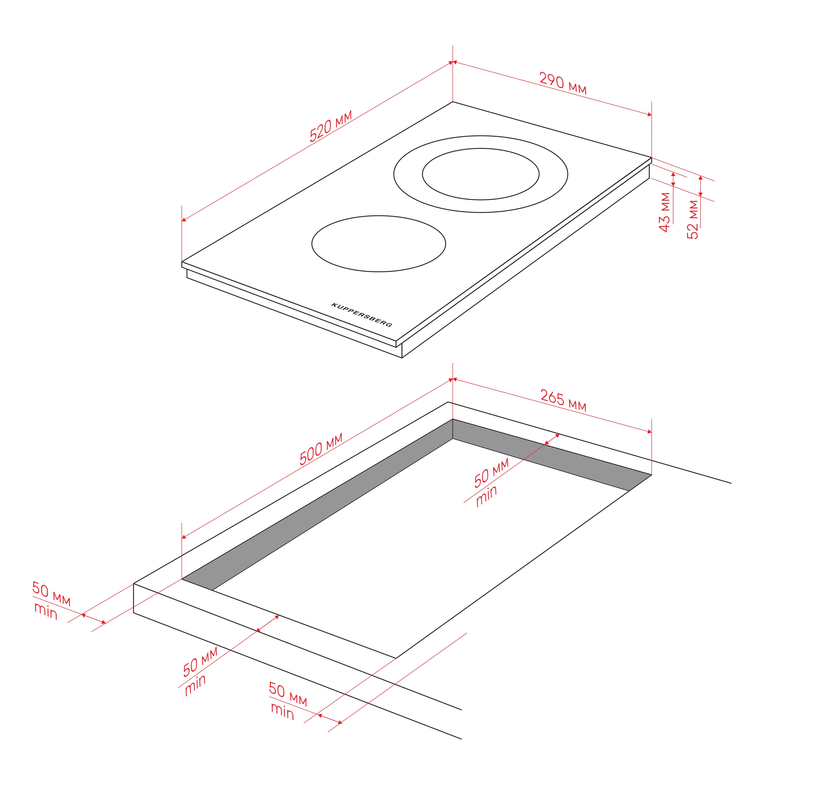 - Размер ниши для встраивания (ШхГ), мм 265x500