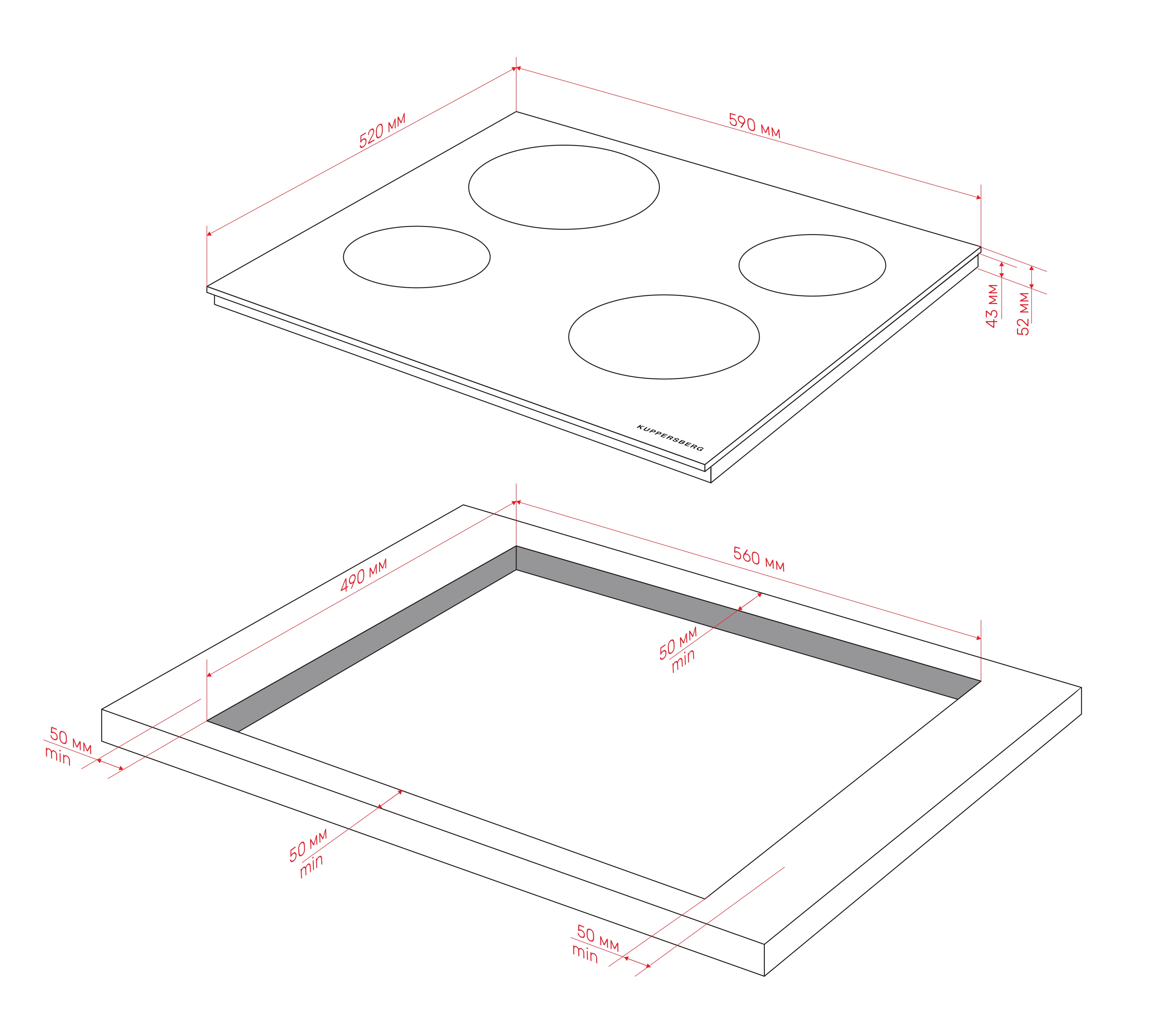 - Размер ниши для встраивания (ШхГ), мм 560x490