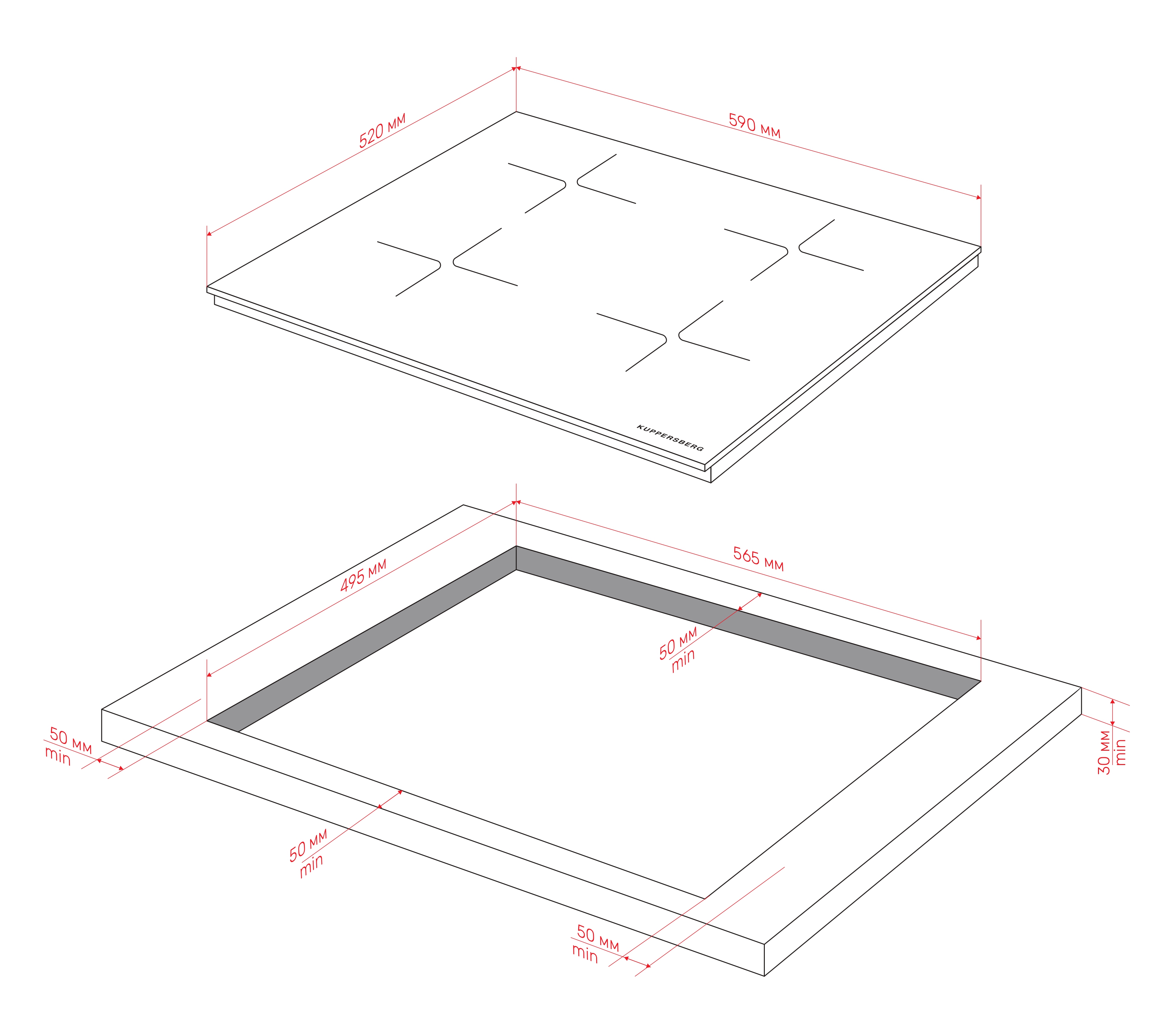 - Размер ниши для встраивания (ШхГ), мм 565x495