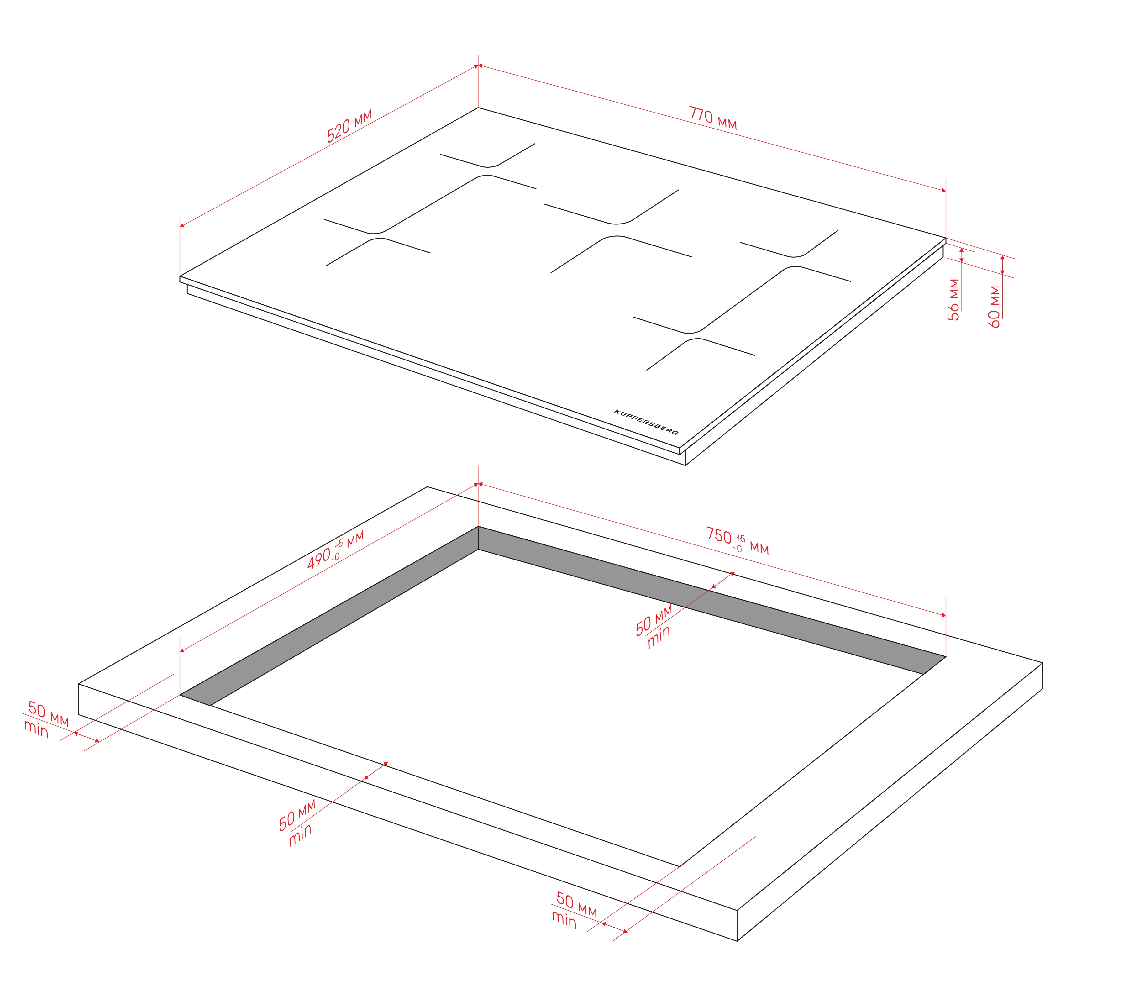 Элегантный дизайн без рамки, обеспечивающий стильный внешний вид и удобство встраивания в столешницу